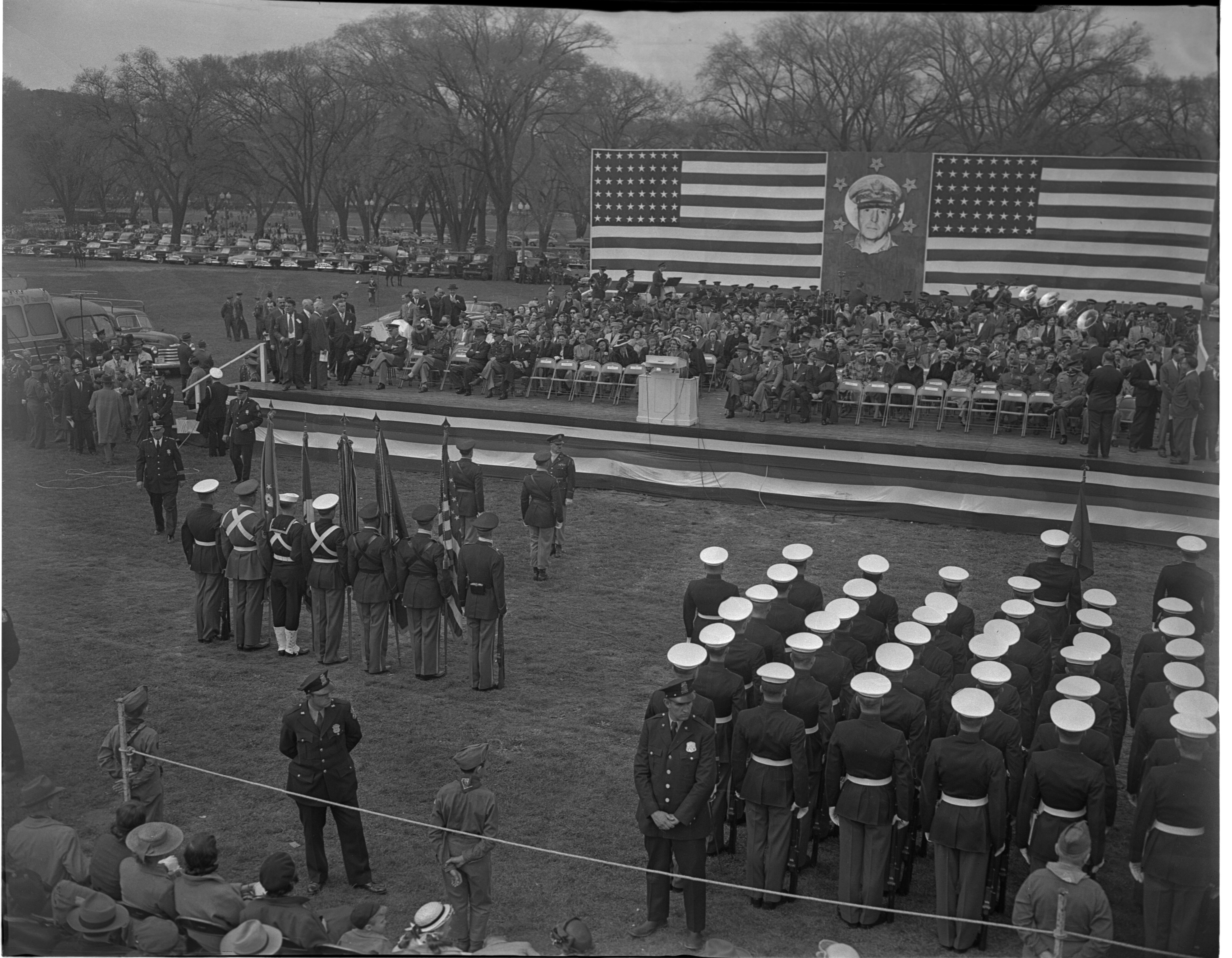 Military dignitaries, including more than 30 generals and admirals, are among those awaiting the arrival of Gen. Douglas MacArthur for a rally in his honor. A week earlier, on April 11, 1951, President Harry S. Truman relieved the general of his command.