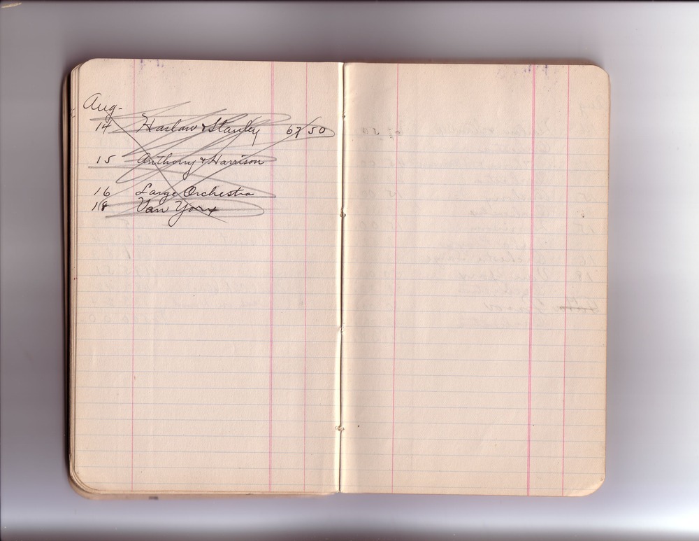 Some of the markings made in pencil in these cash books were made by ENHS Curator Leah Burt during the 1970s and/or early 1980s. For Leah Burt handwriting examples see pages for: December 19, 1921 (cash book 17) ; February 12, 1923 (cash book 17) ; October 27, 1924 (cash book 18) ; December 01, 1925 (cash book 19).