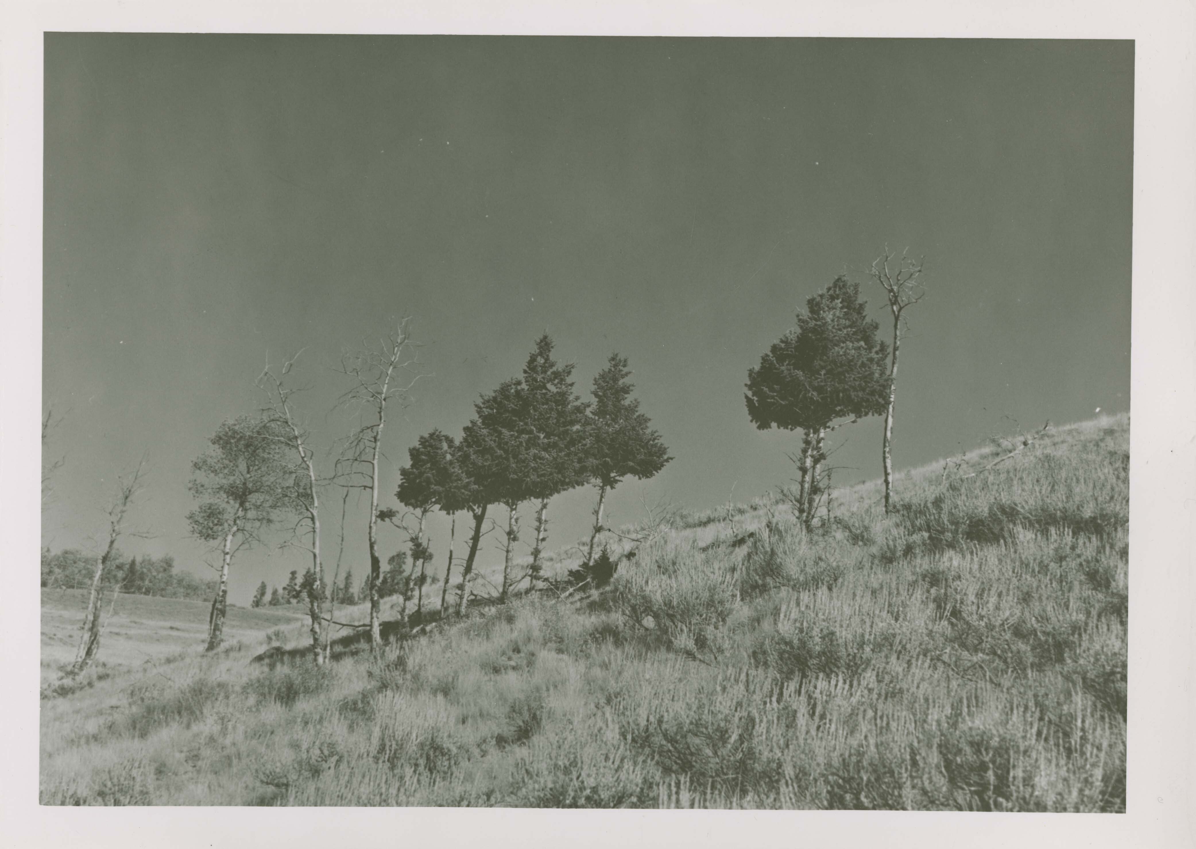 Aspen-Douglas fir grove. Aspen has been killed out as a result of over-use by elk. . Locality: Yellowstone National Park. Negative #: 11979