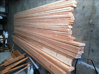 Image of a portion of the lumber purchased for the construction of benches by costumed volunteers as cultural demonstrations in the 1840's Carpenter Shop at Fort Vancouver, using nineteeenth century techniques and equipment.