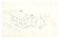 Exterior view of the home of Daniel Hoar, 1800. Illustration depicts Daniel Hoar's additions to the Caleb Ball home.
