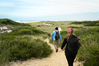 Hikers walk a sandy trail in the Otis Pike Wilderness.