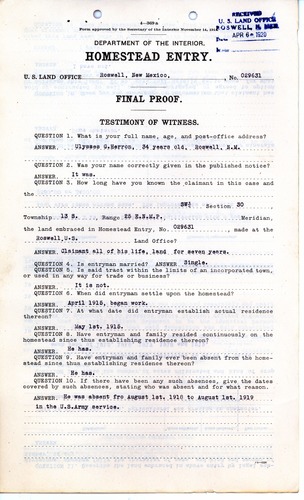 Land Entry Case Files: Homestead Final Certificates. Record Group 49: Records of the Bureau of Land Management. National Archives and Records Administration.
