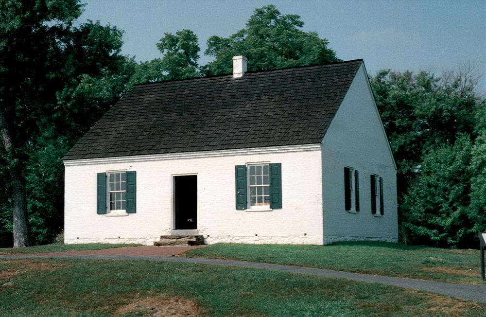 Structure Number: 93 || 35.5' x 34.5' 1.5 story church. 3 bays. 1 door on S side & 1 on E side as separate entrances for men & women. Central chimney at roof crest. Building made of common-bond brick painted white. || Built in 1852 by a Sect of German Baptist Brethren