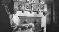The Den is on the southeast side of the Hall, immediately east of the South Foyer leading to the Living Room. The 22'-2" x 18'-5" space includes an arched, semi-elliptical alcove at the west end. The 2-1/4" wide floorboards are arranged in a herringbone pattern. The walls are finished in painted plaster above a paneled wainscot of Santo Domingo mahogany, composed of vertical arched panels set between carved pilaster-like stiles and below ornately carved friezes. A crown molding at the top of the wainscot forms a shallow ledge.