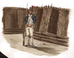 Soldier next to fortification using gabions and fascines. Illustration is unpublished.