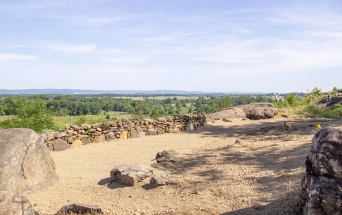 The gathering area near the 140th New York monument is nearly complete. The curved section next to the stone wall is constructed of stabilized aggregate while the section on the right received a layer of topsoil. Native seasonal grasses will be planted in this section.