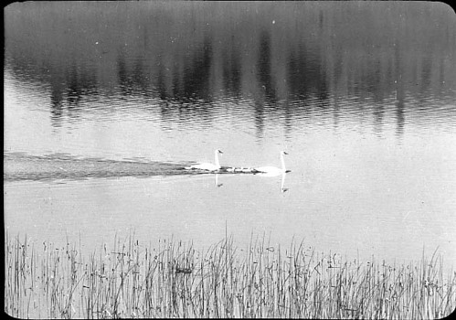 Swan, Trumpeter adults and 5 cygnets, Junction Butte, Yellowstone, 6/15/30