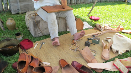 Beef shoes being made inside the stockade.