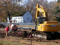 Construction crews contouring the landscape at General Washington's Headquarters. This work is Phase I of a project to rehabilitate the area.