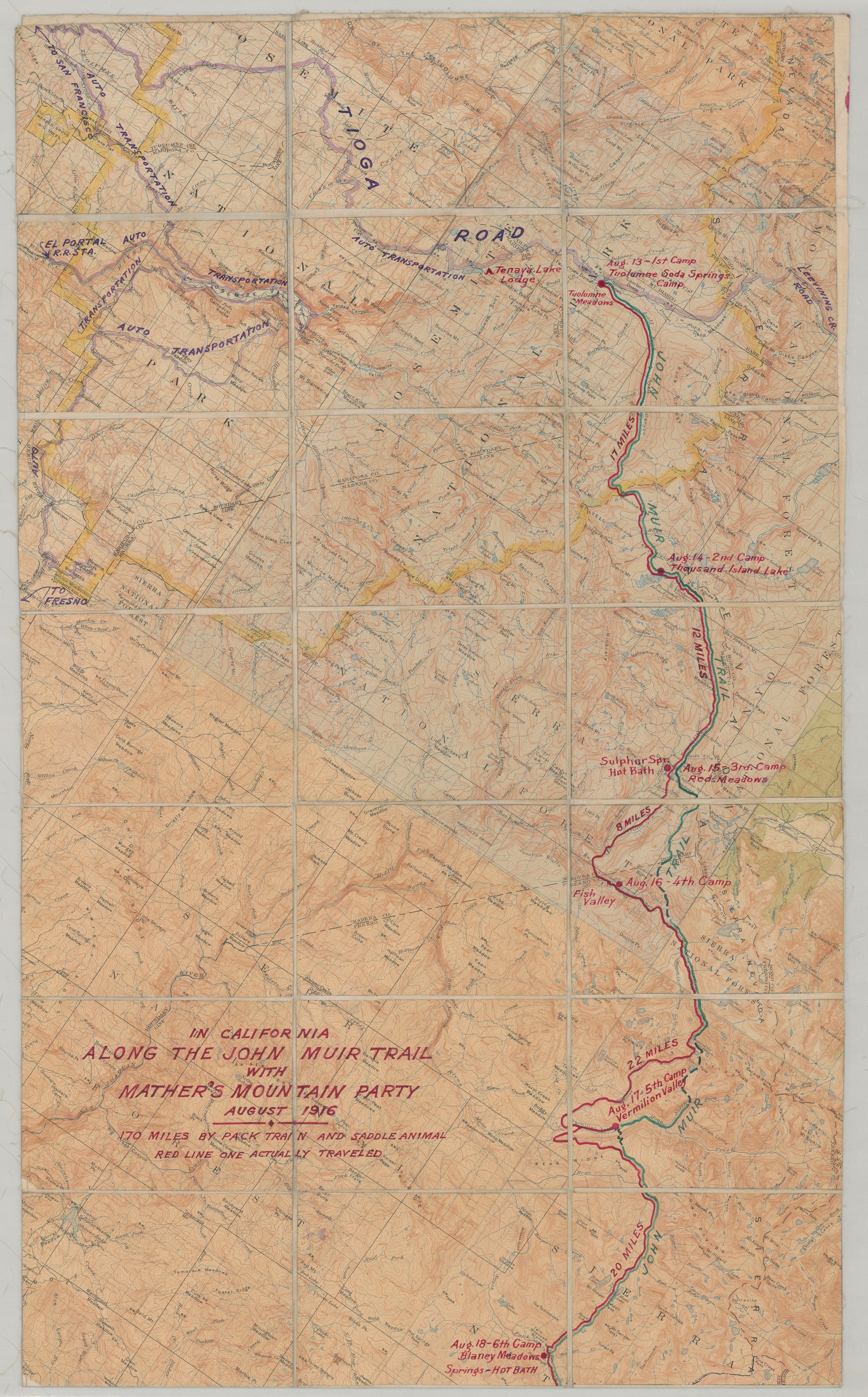 Route of Stephen T. Mather's Mountain Party Pack Trip, Tuolumne Meadows to Giant Forest