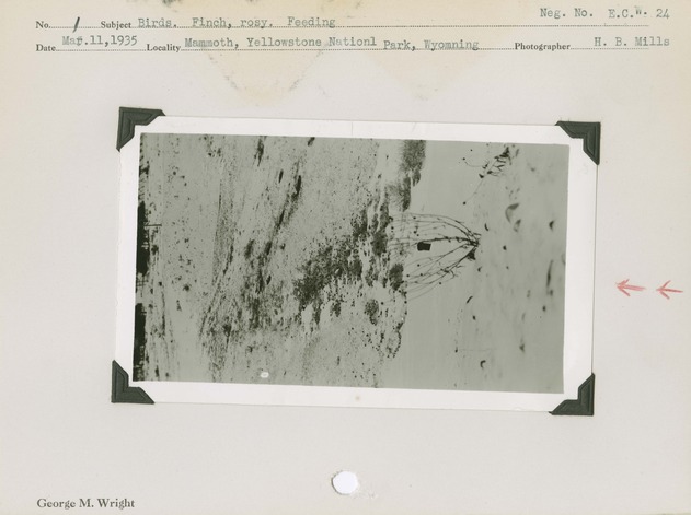 Birds. Finch, Rosy. Feeding. Locality: Mammoth, Yellowstone National Park, Wyoming. Negative #: ecw24