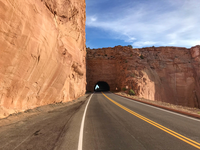 Road leading to a tunnel in a rock wall