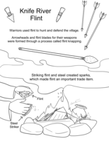 A coloring page describing what Knife River Flint was used for, including weaponry and fire starting.