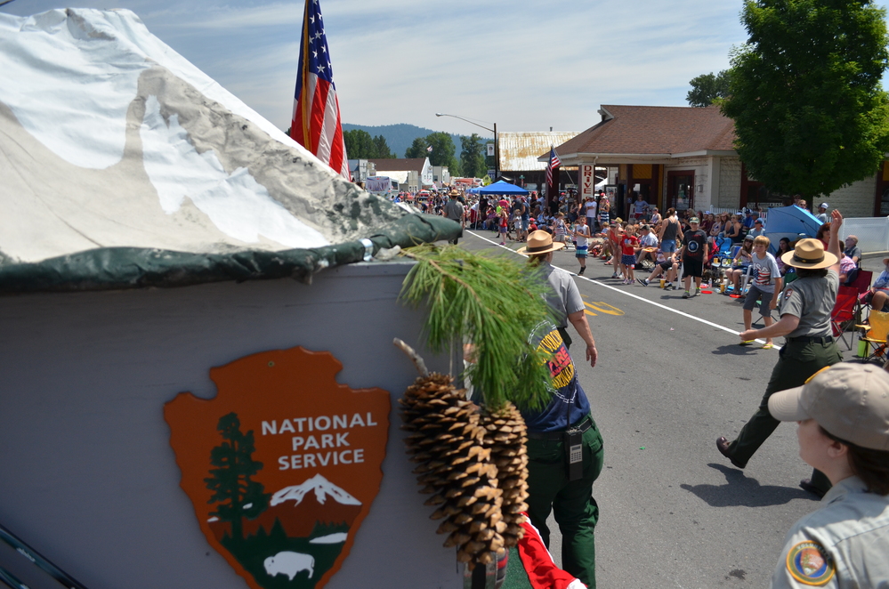 Arrowhead and pinecones on the park float in the Chester Fourth of July Parade