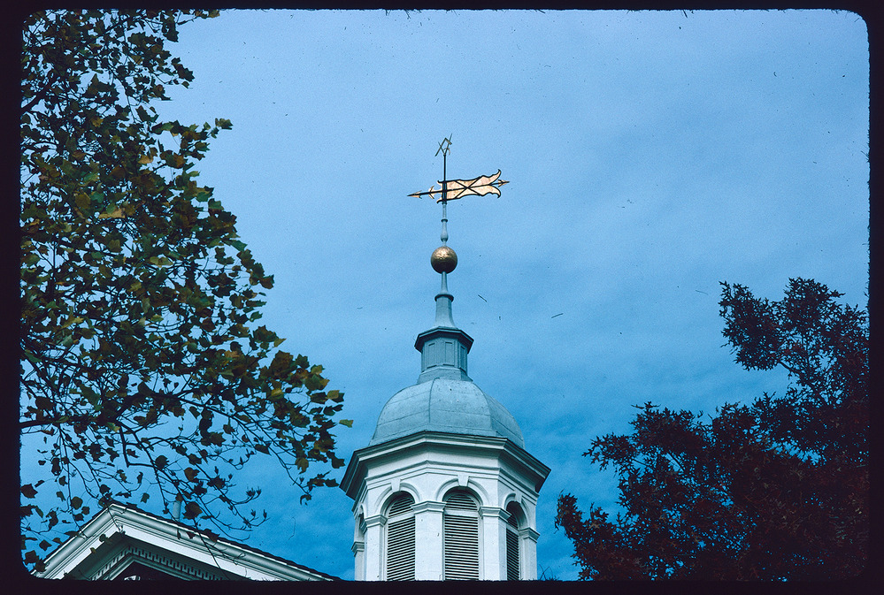Carpenters Hall. Exterior. Looking up at steeple and weathervane.