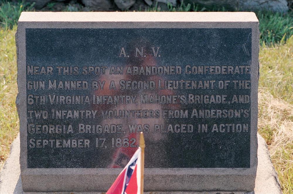Commemorative monument erected to mark where a Lt of the 6th VA Inf & 2 infantry volunteers from Anderson's GA Brg put an abandoned gun into action at the Battle of Antietam on Sept 17, 1862.