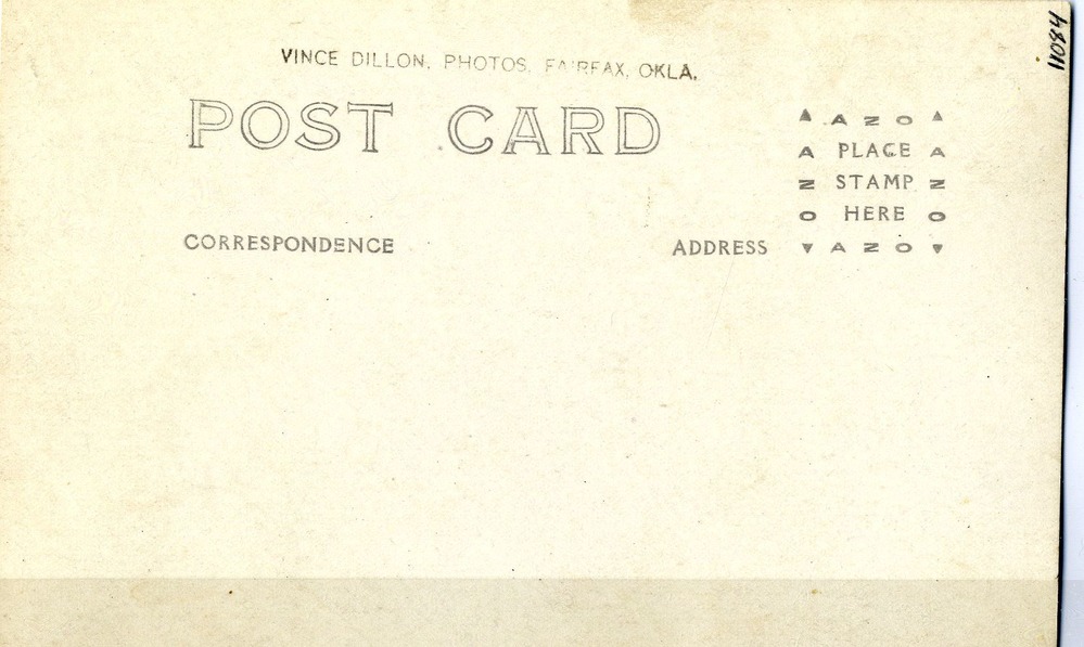 LIBI_00312_11084; Black and White postcard. This image depicts two small children, one boy and one girl, sitting on a box. Both are crying. “Little Osages. Copyright 1913 Vince Dillon” is written in white along the box. “Vince Dillon. Photos Fairfax Okla” is stamped in black ink on the verso. This image was created by Vince Dillon in 1913. ; postcard ;Courtesy of the National Park Service, Little Bighorn Battlefield National Monument, LIBI_00312_11084, Vince Dillon, "'Little Osages,' Two Small Children Crying," 1913.