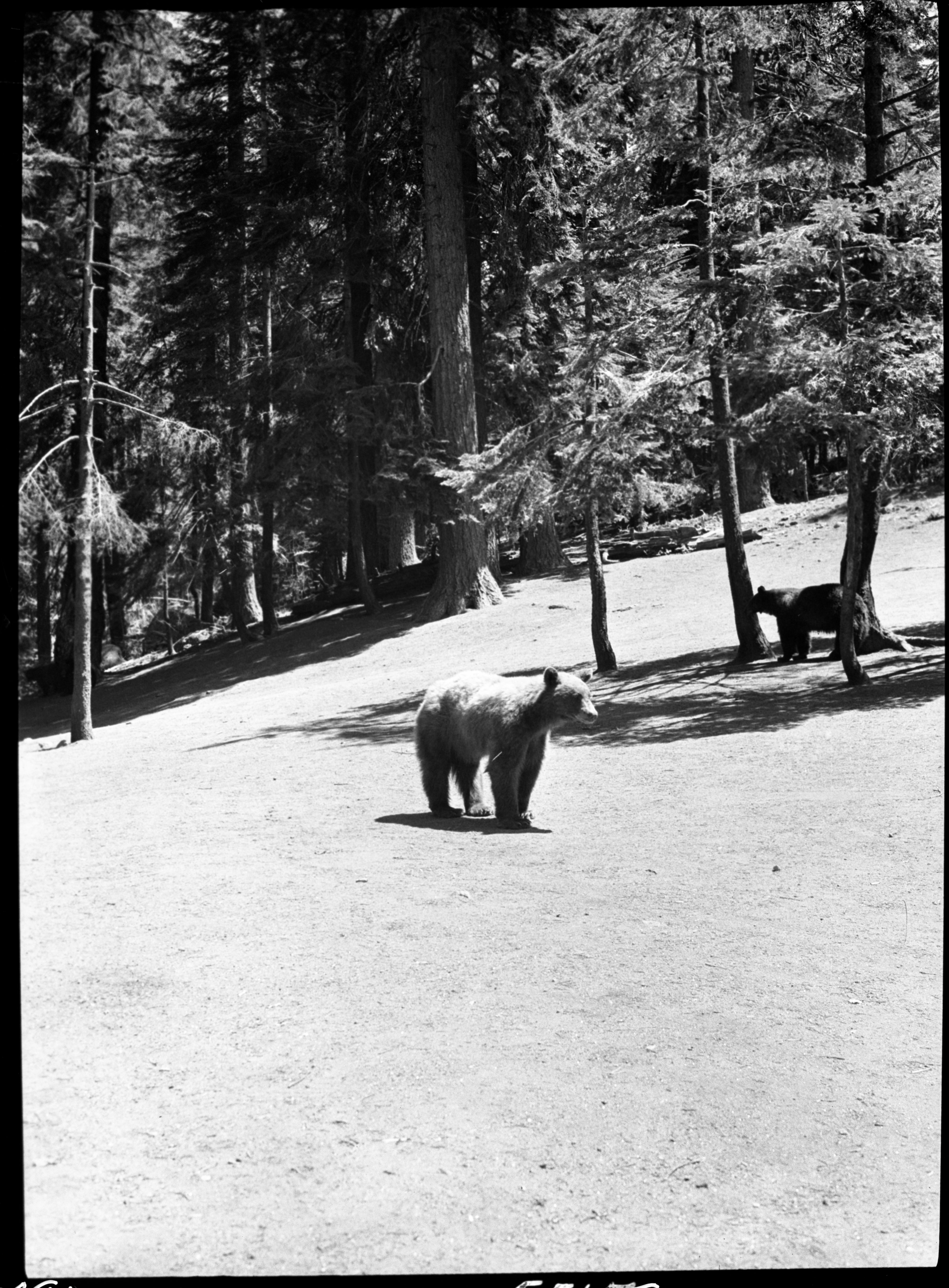 Lowell Sumner, 350616, Giant Forest, SNP, Bears and Bear Damage, waiting to be fed at garbage pile, Bear Hill.