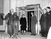 President and Mrs. Truman being received in front of the main entrance before reoccupying the reconstructed White House. White House renovation project.
