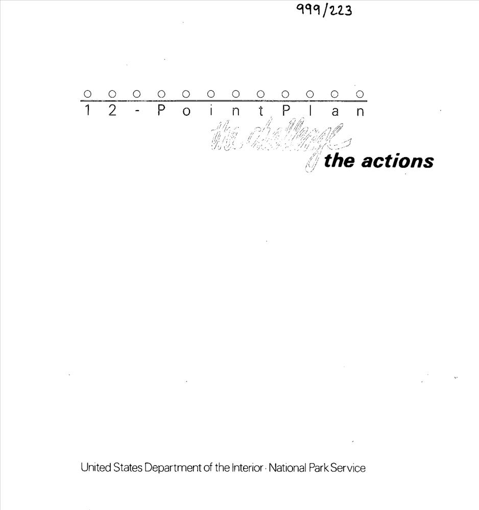 The 12-Point Plan has begun a process of change in the National Park Service that is shaping a new vision and stimulating a new enthusiasm for protecting, preserving, and perpetuating all units of the national park system. The actions in this plan represent the first step in implementing the National Park Service's 12-Point Plan.