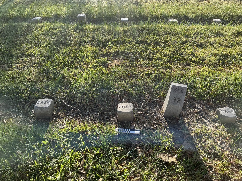 Flat Marker at Chalmette National Cemetery. Grave ID: 2857. Located at Section 38, Row 1, Site Number 8. Photo taken as part of the 2024 condition assessment and inventory.