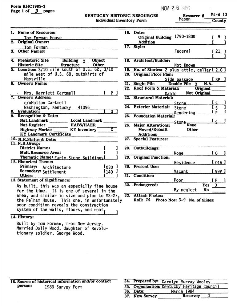 Early Stone Buildings of Kentucky Outer Bluegrass and Pennyrile TR