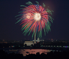Shots of fireworks going off above the National Mall.