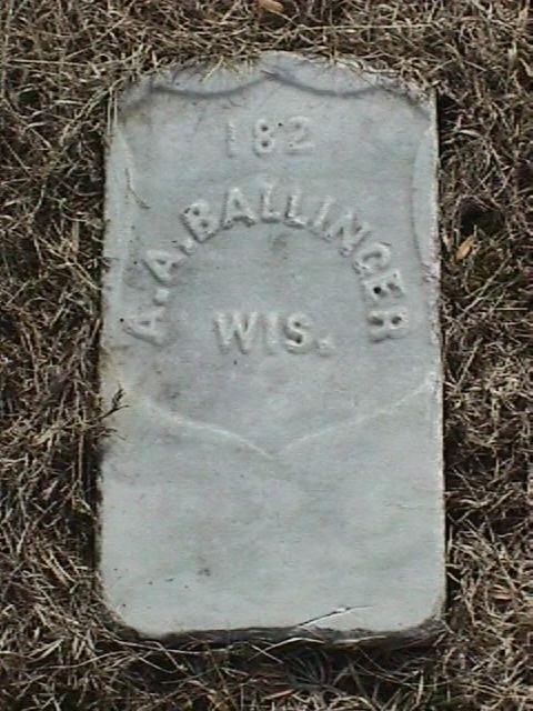 Headstone for Asa A. Ballinger in Poplar Grove National Cemetery