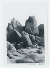 Black and white image of Belle Mt. area, campground, and rock formations