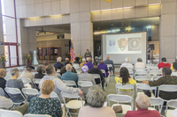 Acting superintendent, Jewel Harris, greets visitors to the event celebration.
