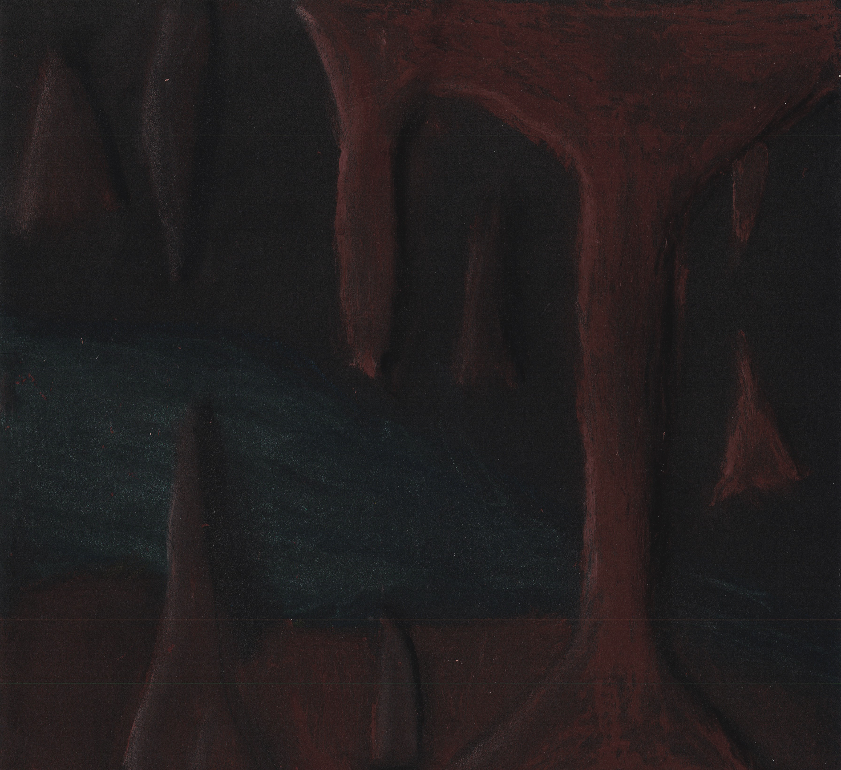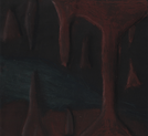 drawing of cave formations in dim cave light, rendered in color pastels