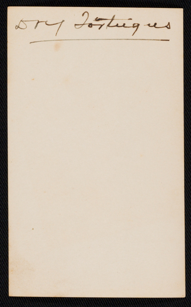 Back side of photo Fort Jefferson, interior, light house in distance with written text, “Dry Tortugas.”