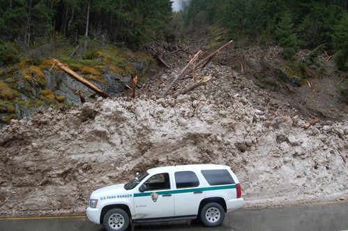 NPS Vehicle Near Lillian Creek Avalanche Debris, Ross Lake NRA - 2011