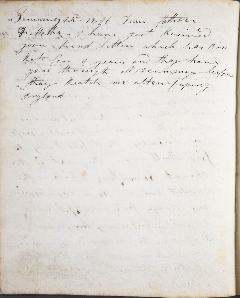 Jenuarey [January] 25 1826 Dear father & mother I have just reseivd [received] your kind letters which has bin [been] Rote [wrote] for 2 years and thay [they] have gone through all Germaney [Germany] before thay [they] keatch [catch] me after passing Ingland [England]