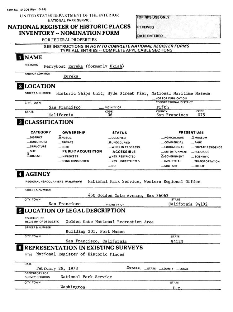 San Francisco ; San Francisco Maritime State Historic Park, 2905 Hyde St.