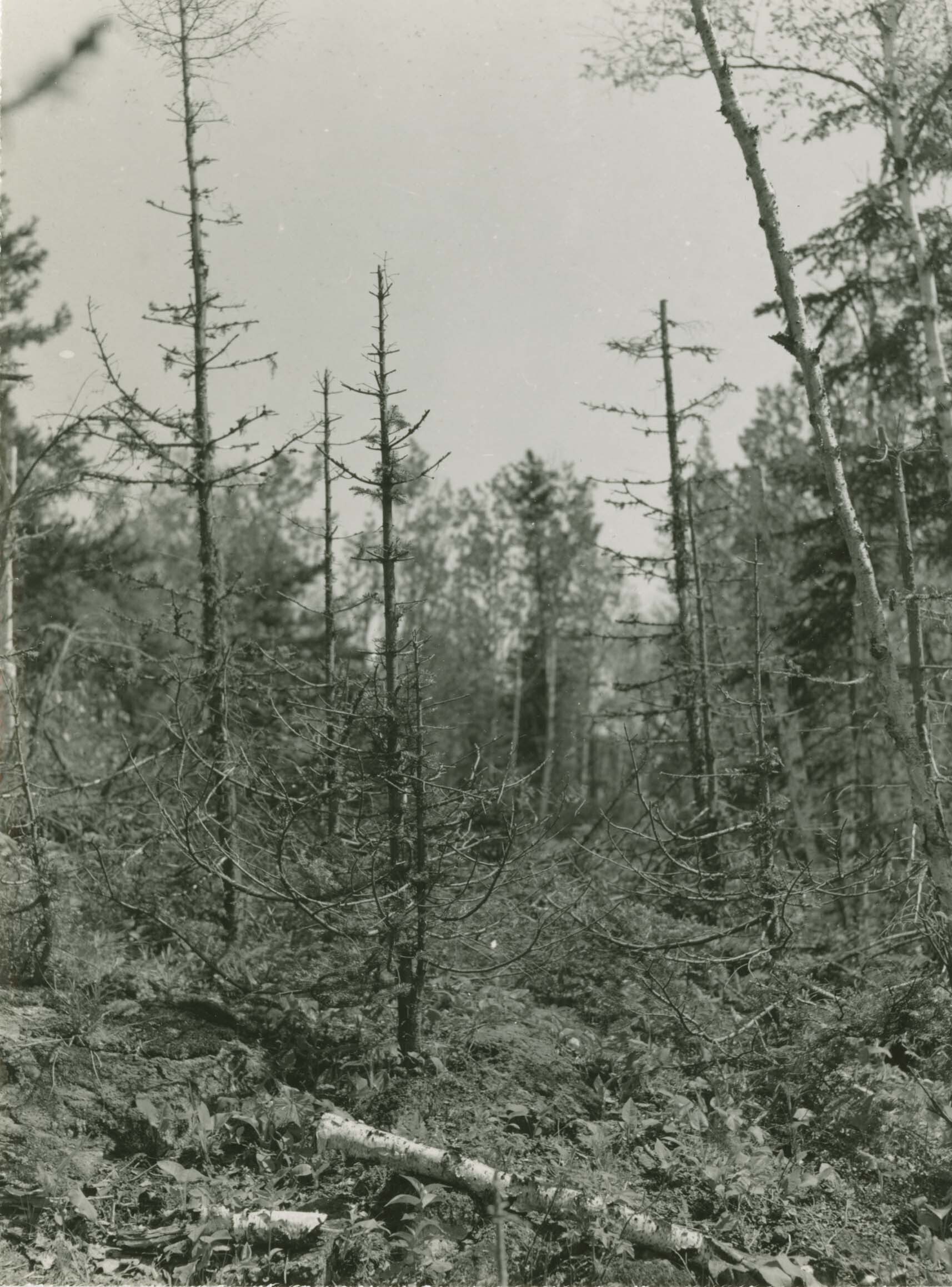 Balsam firs browsed by moose. On trail between head of Rock Harbor and Lake Ritchie. Locality: Isle Royale National Park. Negative #: 10878