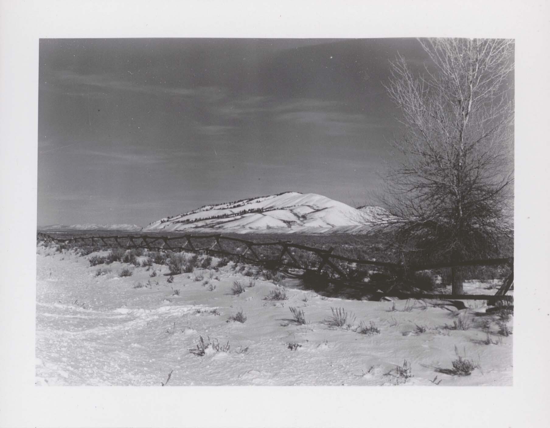 Scenery: South end of Blacktail Butte, from highway north of Gros Ventre River. Negative #: 11777. Location: Jackson Hole National Monument [Grand Teton National Park]. Location of negative: Biologist’s Office, Director’s Office. [This information comes from the reverse of the envelope for this negative number.].