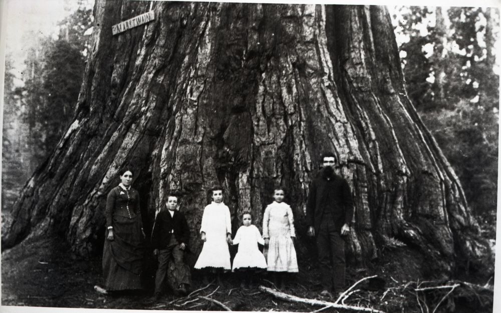 Mark Twain Tree, Miscellaneous Groups, Ben Hicks and family of Visalia at Mark Twain Tree, 1880's.
