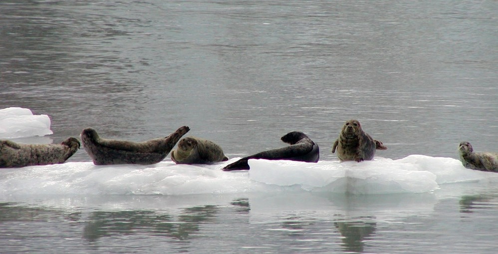 Seals resting on iceberg in Johns Hopkins Inlet
