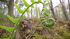 Closeup video of a fern fiddlehead in later stages, with some leaflets unfurled.