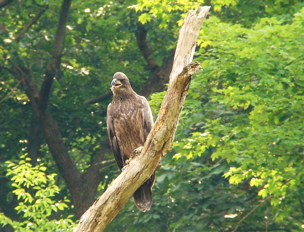 In 2007 a pair of bald eagles nest in the Pinery Narrows heronry. One eaglet is successfully raised. It is shown just after it fledged in early July.
