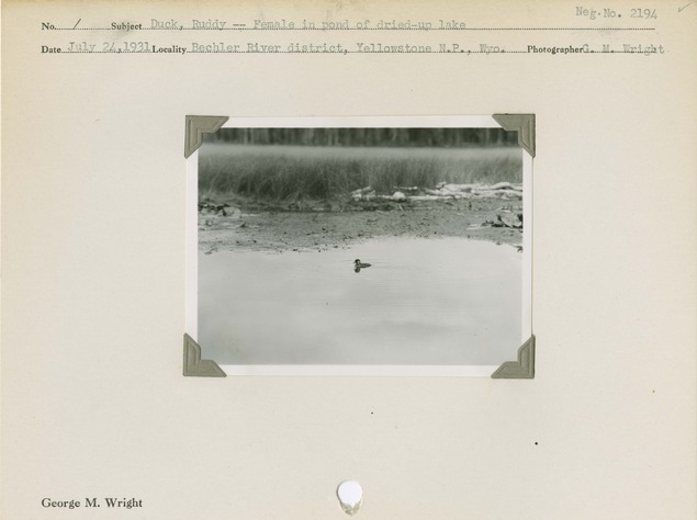 Duck, Ruddy -- Female in pond of dried-up lake. Locality: Bechler River district, Yellowstone National Park, Wyoming. Negative #: 2194