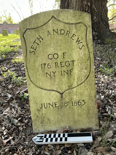 Headstone at Chalmette National Cemetery. Grave ID: 11305. Located at Section 141, Row 6, Site Number 10. Photo taken as part of the 2024 condition assessment and inventory.