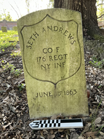 Extra image of historic upright marble headstone with incised shield face.