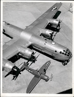 Bird's eye view of Boeing B-20 Bomber aircraft, one of several models manufactured in Wichita Kansas during World War II.