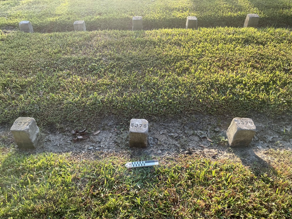 Flat Marker at Chalmette National Cemetery. Grave ID: 8378. Located at Section 101, Row 4, Site Number 5. Photo taken as part of the 2024 condition assessment and inventory.