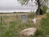 A stone monument on the edge of a grass covered field marks the location of Cold Springs Pony Express Station