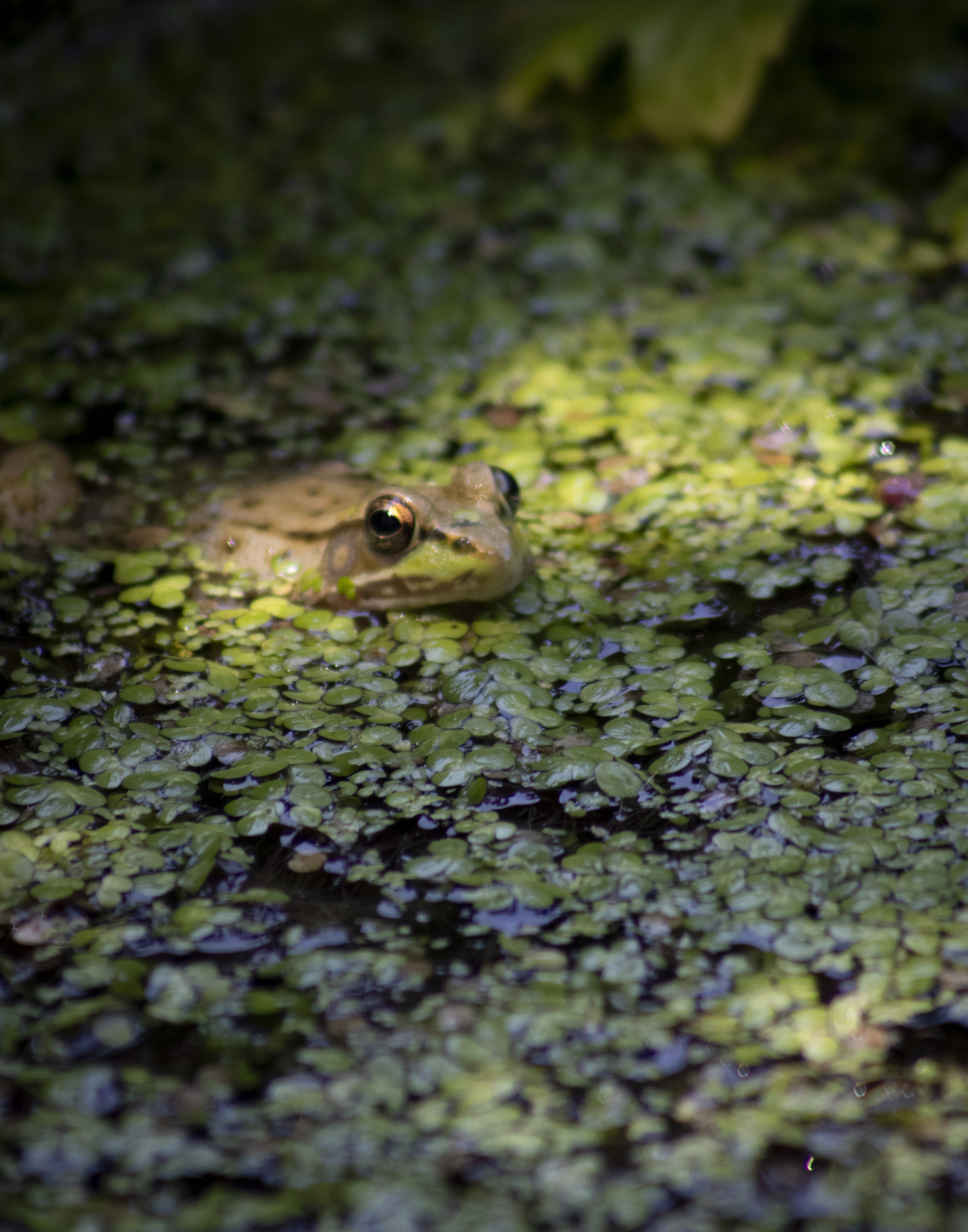 At Kenilworth, a frog was chilling on the water and decided to poke its head out.