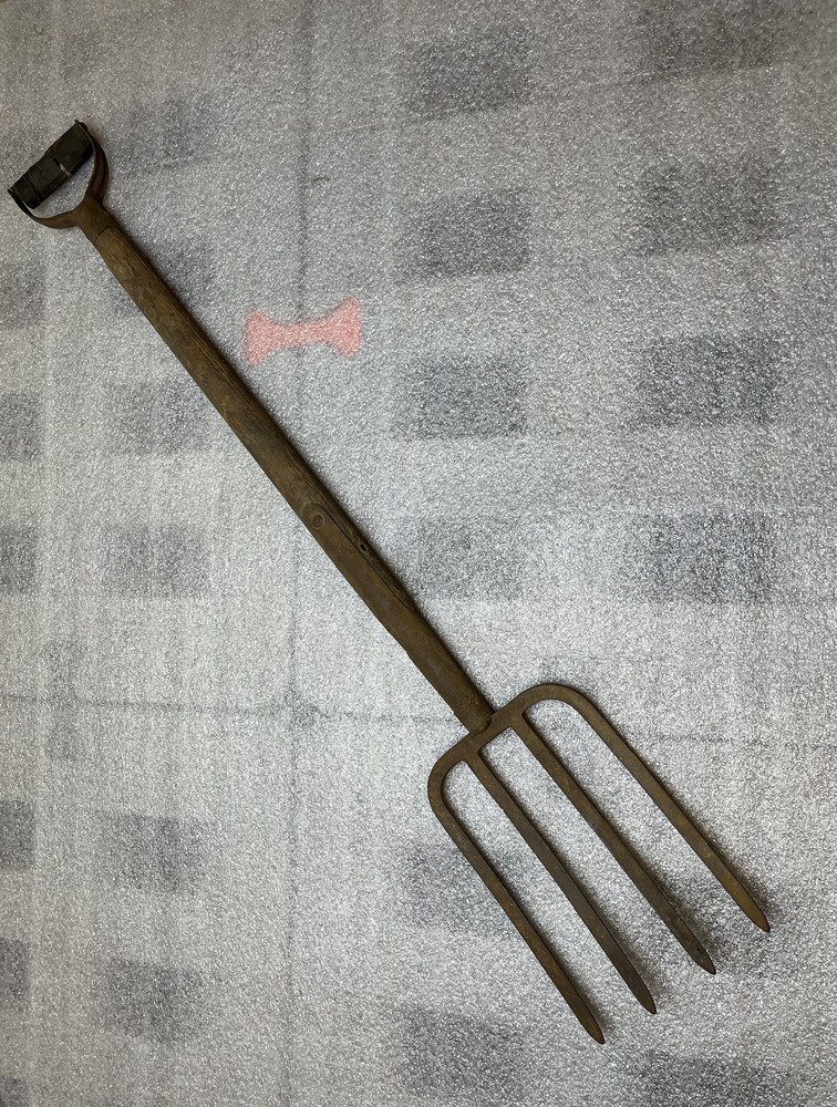 Wood & iron hay fork (1880-1940). Used by farm workers to spear bundles of hay and lad hay wagons.